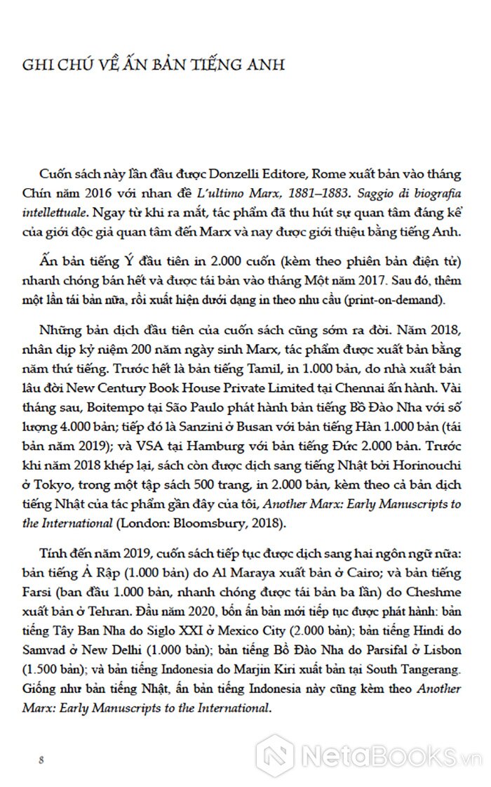 Sách Karl Marx Và Dòng Suy Tư Chưa Khép Lại - Những Năm Cuối Đời - Marcello Musto của tác giả Marcello Musto, có bán tại Nhà sách online NetaBooks với ưu đãi Bao sách miễn phí và Gian hàng NetaBooks tại Tiki với ưu đãi Bao sách miễn phí và tặng Bookmark