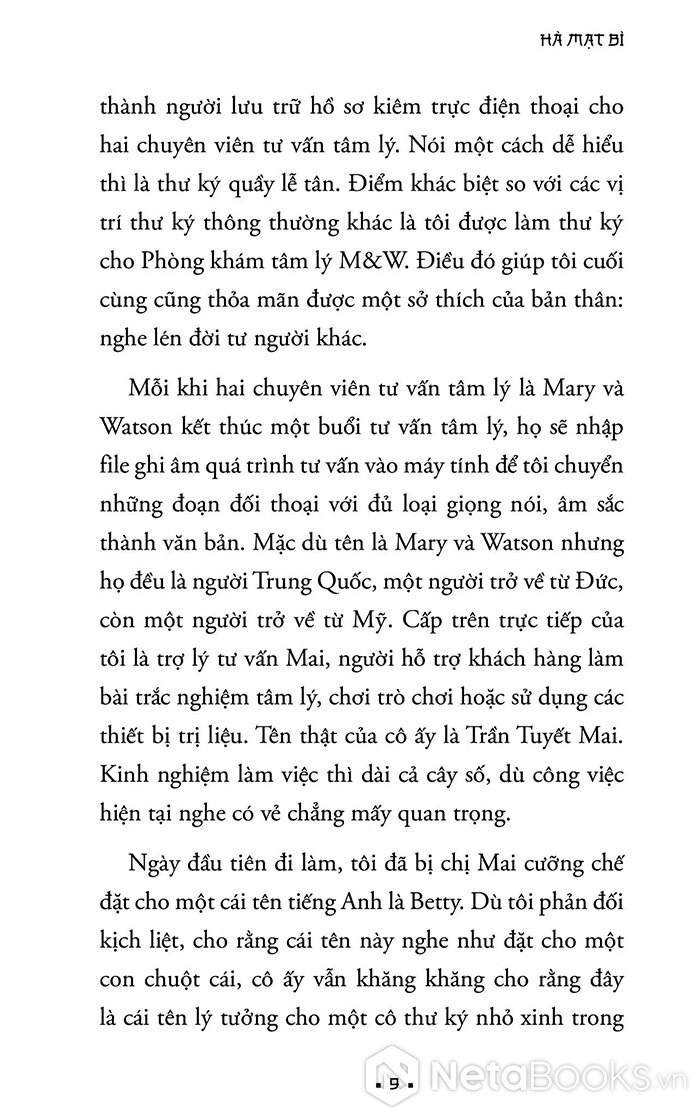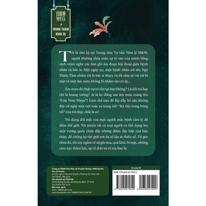 Tôi là thư ký tại Trung tâm Tư vấn Tâm lý M&W, người thường thỏa mãn sự tò mò của mình bằng cách trộm nghe các bản ghi âm đoạn hội thoại giữa bệnh nhân và bác sĩ. Một ngày nọ, một bệnh nhân nữ tên Ngô Thiên Tâm nhầm tôi là bác sĩ Mary và đã chia sẻ với tôi bí mật về một âm mưu khổng lồ nhắm vào cô ấy...