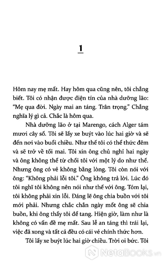 “Hôm nay mẹ mất. Hay hôm qua cũng nên, tôi chẳng biết."