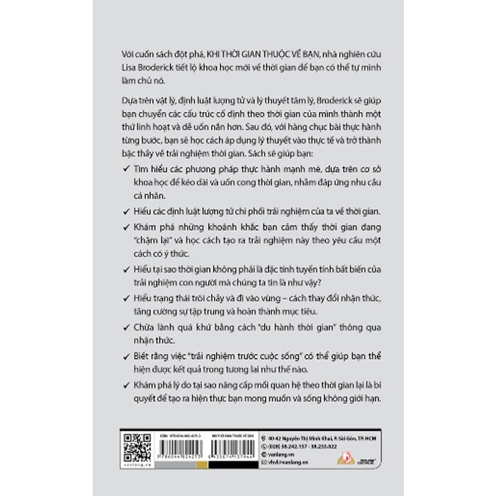 Khi Thời Gian Thuộc Về Bạn là một cuốn sách đột phá của nhà nghiên cứu Lisa Broderick, tiết lộ những khám phá mới mẻ về khoa học của thời gian nơi bạn có thể tự điều khiển và làm chủ nhịp sống của chính mình. Dựa trên nền tảng vật lý lượng tử, tâm lý học và triết lý ý thức, tác giả chỉ ra rằng: thời gian không hoàn toàn tuyến tính như ta vẫn nghĩ, mà có thể uốn cong, giãn nở và chịu tác động từ nhận thức con người. Thông qua hàng chục bài tập thực hành thực tế, cuốn sách giúp bạn trải nghiệm sâu sắc cách thời gian vận hành từ đó kiểm soát tốt hơn công việc, cảm xúc và định hướng tương lai.