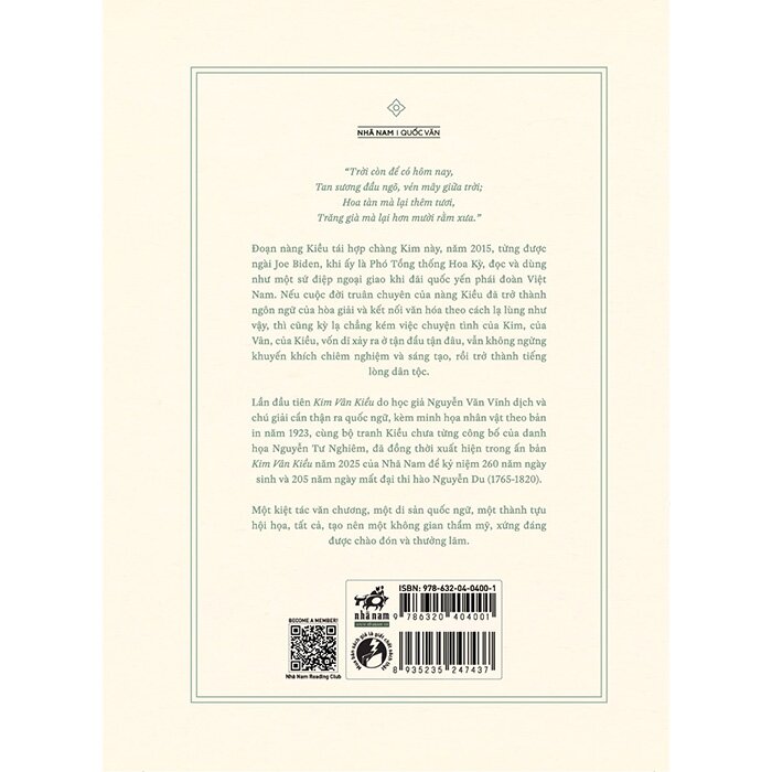 Lần đầu tiên Kim Vân Kiều do học giả Nguyễn Văn Vĩnh dịch và chú giải cẩn thận ra quốc ngữ, kèm minh họa Kiều theo bản in năm 1923, cùng bộ tranh Kiều chưa từng công bố của danh họa Nguyễn Tư Nghiêm, đã đồng thời xuất hiện trong ấn bản Kim Vân Kiều năm 2025 của Nhã Nam để kỷ niệm 260 năm ngày sinh và 205 năm ngày mất đại thi hào Nguyễn Du (1765-1820).