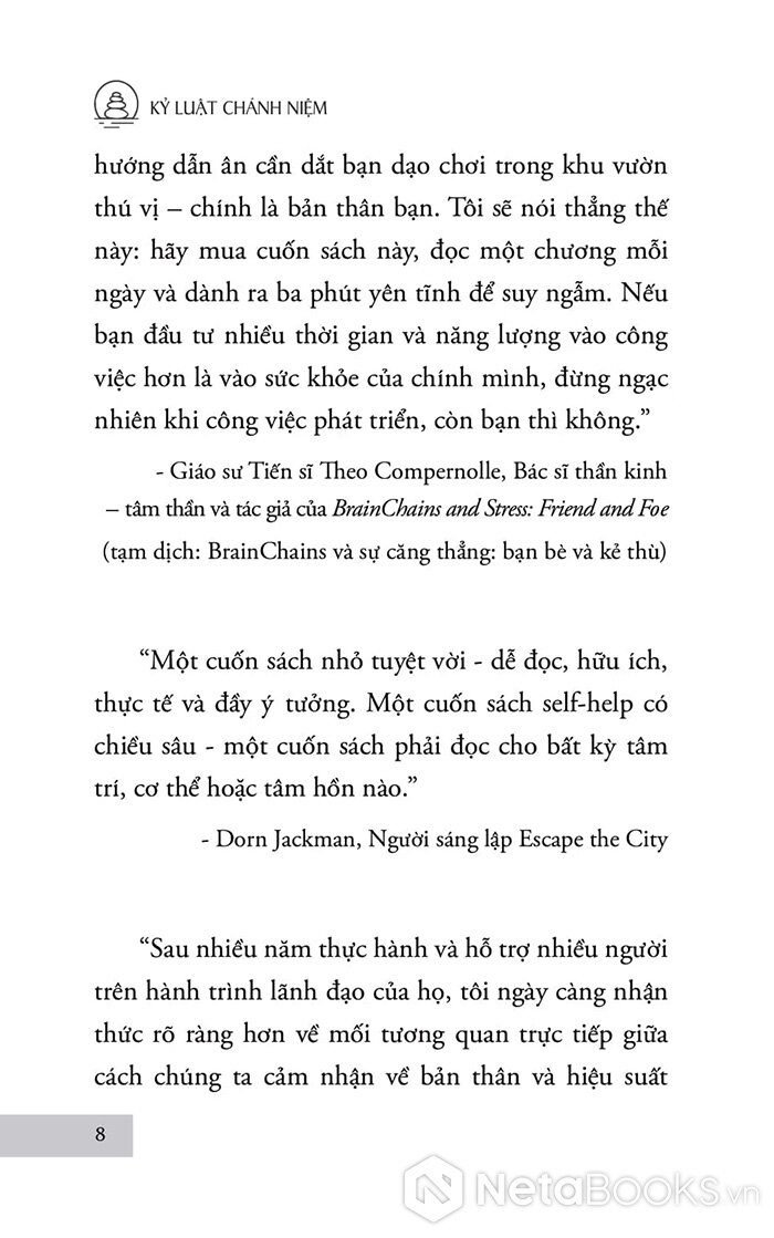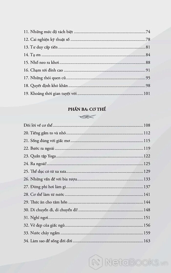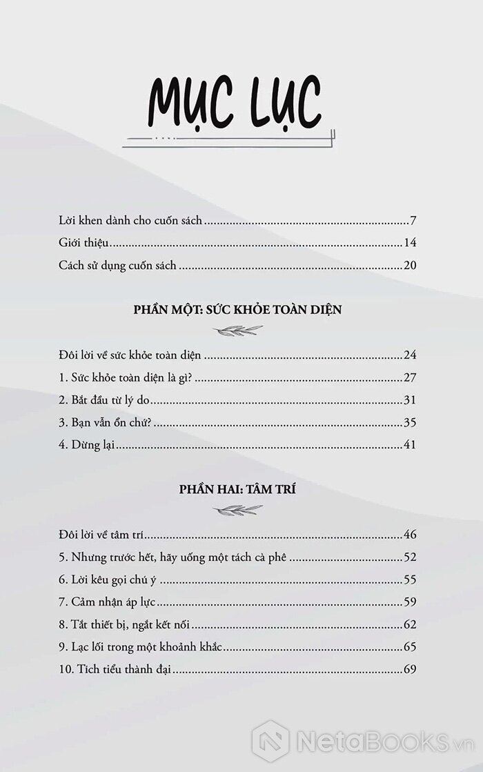 Cuốn sách này kết hợp nghiên cứu khoa học hiện đại và triết lý sống chánh niệm, trình bày qua 50 ý tưởng thực hành ngắn gọn, dễ áp dụng, giúp bạn: