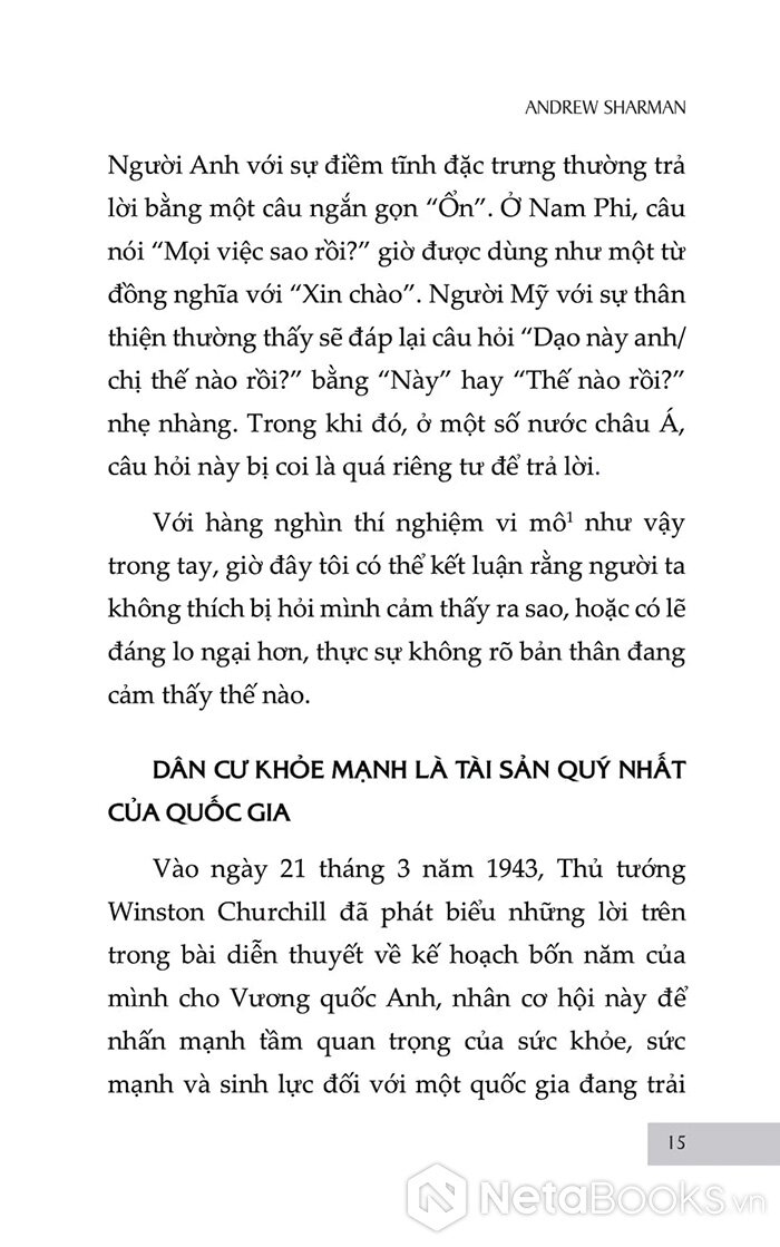 Andrew Sharman là chuyên gia tư vấn, diễn giả và huấn luyện viên được ưa chuộng, làm việc trên toàn cầu với các công ty thuộc danh sách Fortune 500 để cải thiện văn hóa doanh nghiệp và hướng tới sựu xuất sắc. Khách hàng của ông bao gồm đội đua F1 nhanh nhất, những thương hiệu thời trang tinh xảo nhất và những nhà sản xuất sô cô la ngon nhất, cũng như các tổ chức phi chính phủ (NGO) nhue Trung tâm Thương mại Quốc tế, Liên Hợp Quốc và Tổ chức Y tế Thế giới - nơi ông đã thực hiện các chương trình về sức khỏe và khả năng phục hồi cá nhân trong nhiều năm.