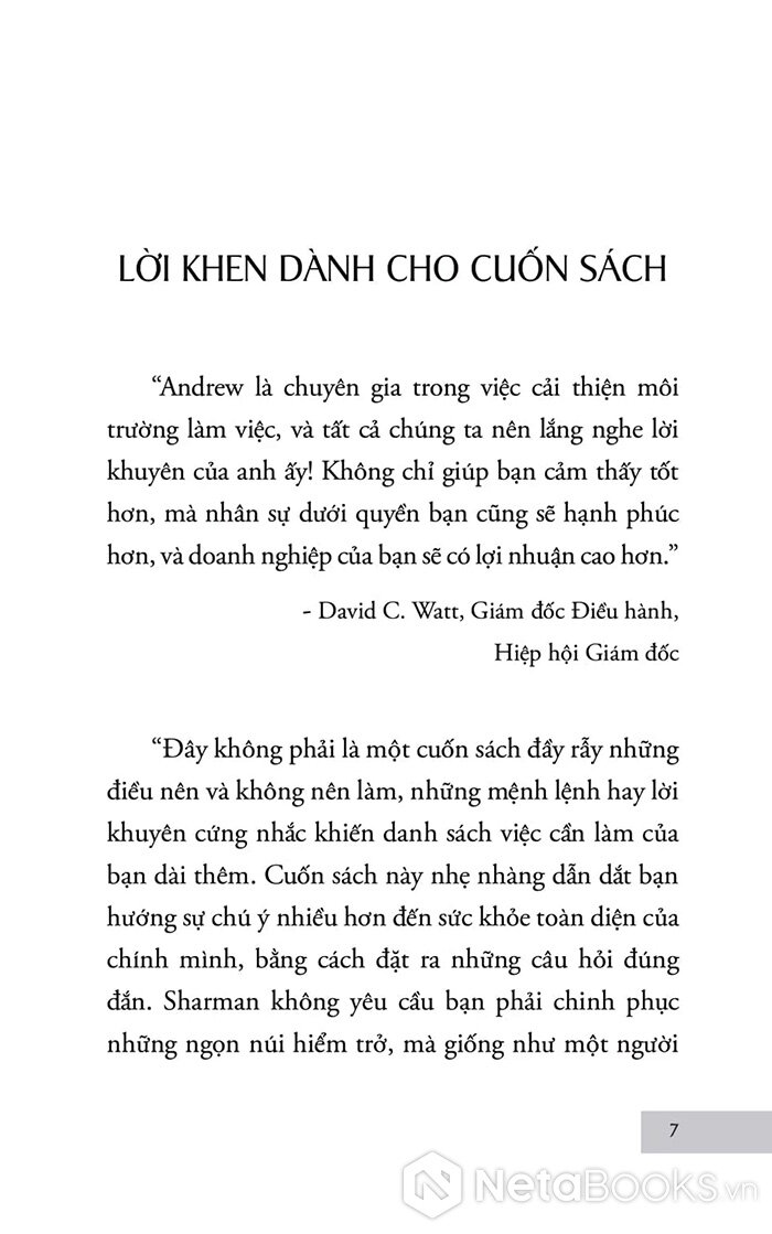Andrew Sharman không nói về “thiền” như một khái niệm xa vời, mà như một kỹ năng quản trị cuộc sống, giúp các nhà lãnh đạo, nhân viên, hay bất kỳ ai đang mệt mỏi trong guồng quay hiện đại, học cách “sống đúng”, không chỉ “làm nhiều”.