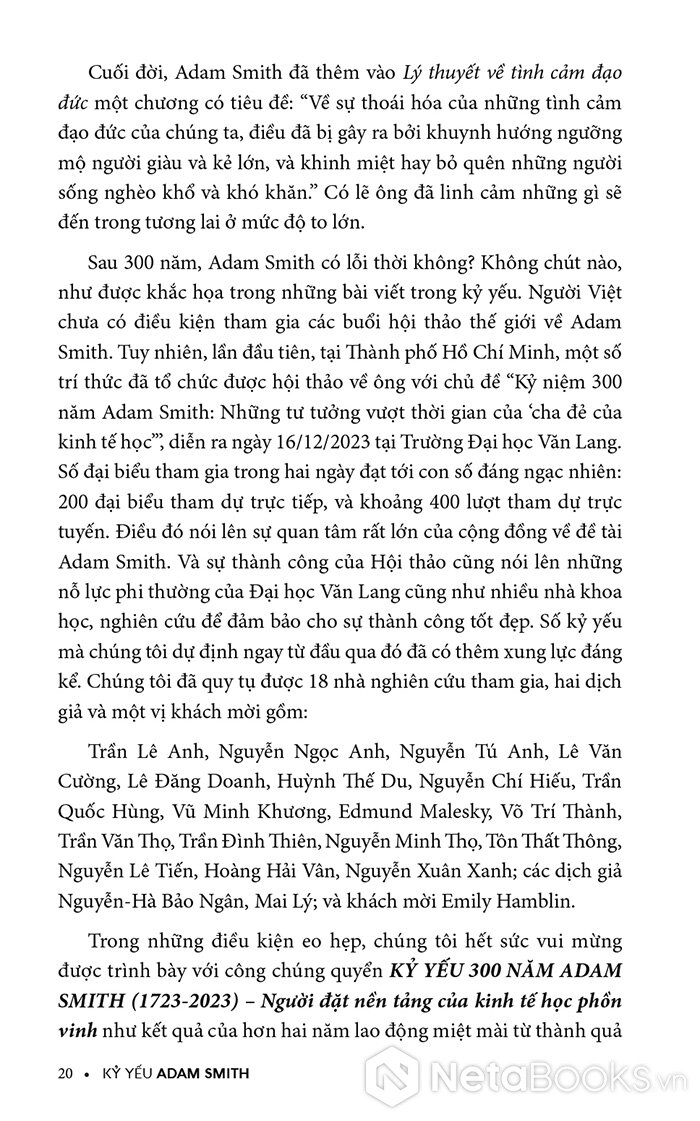 Kỷ Yếu 300 Năm Adam Smith (1723-2023) - Người Đặt Nền Tảng Của Kinh Tế Học Phồn Vinh