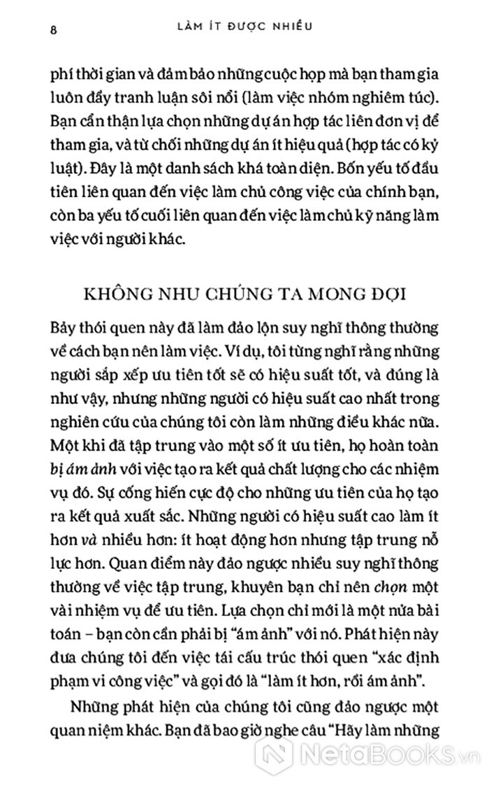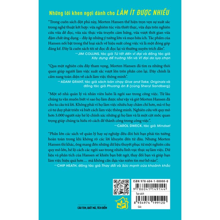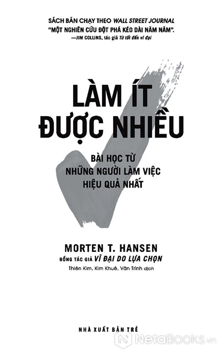 Sách Làm Ít Được Nhiều - Bài Học Từ Những Người Làm Việc Hiệu Quả Nhất của tác giả Morten T. Hansen, có bán tại Nhà sách online NetaBooks với ưu đãi Bao sách miễn phí và Gian hàng NetaBooks tại Tiki với ưu đãi Bao sách miễn phí và tặng Bookmark
