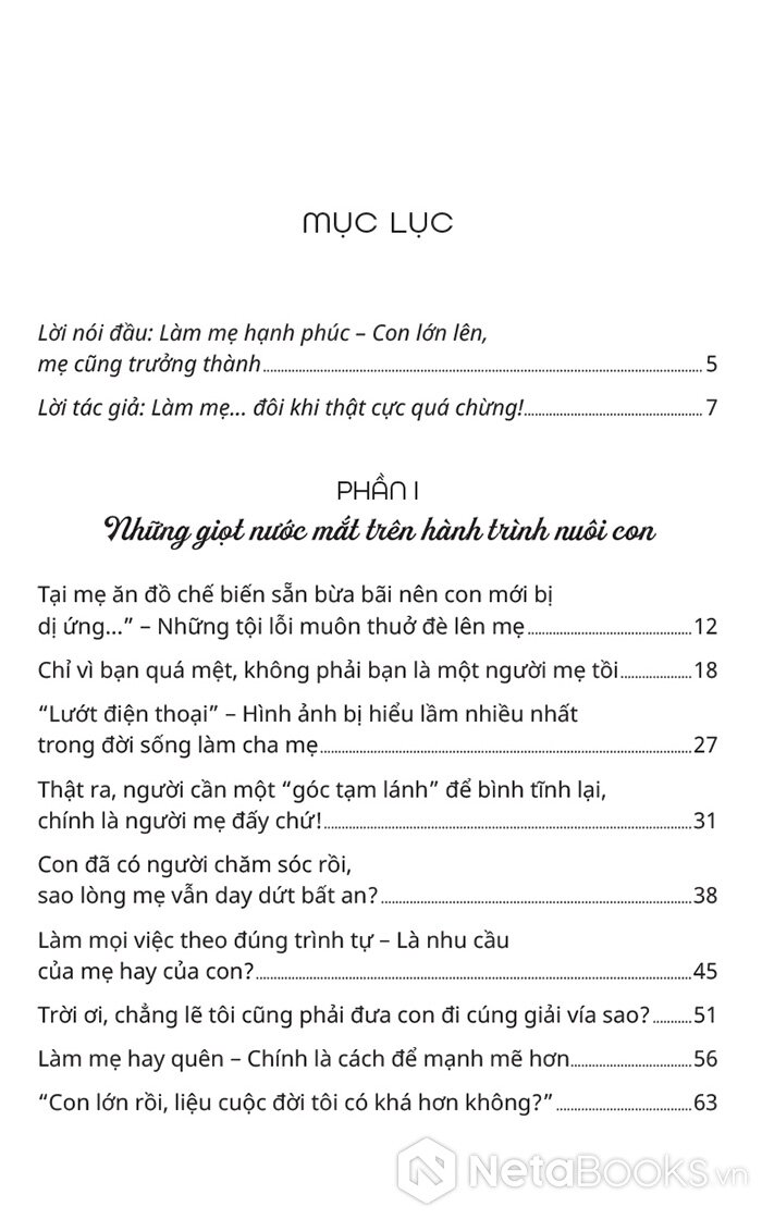 Sách Làm Mẹ Hạnh Phúc - Con Lớn Lên, Mẹ Cũng Trưởng Thành của tác giả Trần Yến Kỳ, có bán tại Nhà sách online NetaBooks với ưu đãi Bao sách miễn phí và Gian hàng NetaBooks tại Tiki với ưu đãi Bao sách miễn phí và tặng Bookmark