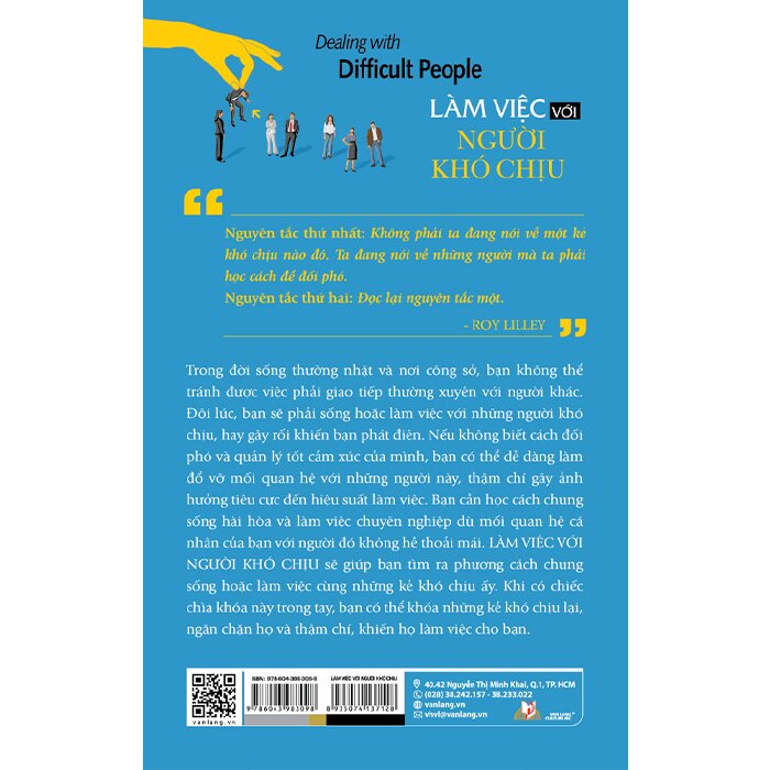 quan hệ với những người này, thậm chí gây ảnh hưởng tiêu cực đến hiệu suất làm việc. Bạn cần học cách chung sống hài hòa và làm việc chuyên nghiệp dù mối quan hệ cá nhân của bạn với người đó không hề thoải mái. LÀM VIỆC VỚI NGƯỜI KHÓ CHỊU sẽ giúp bạn tìm ra phương cách chung sống hoặc làm việc cùng