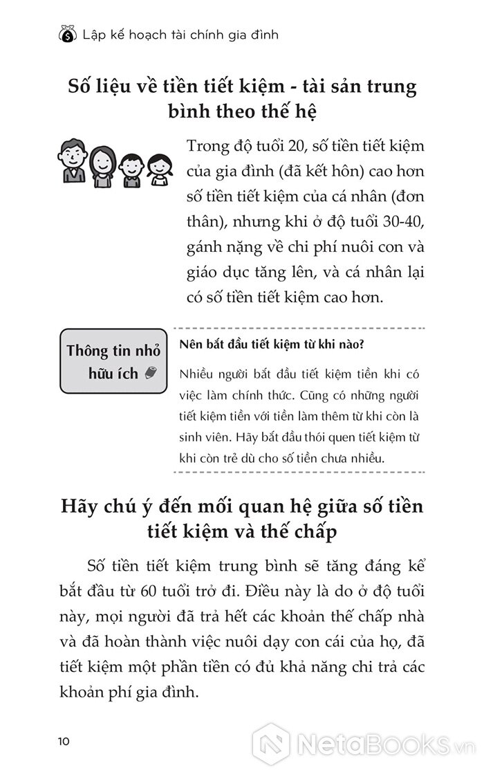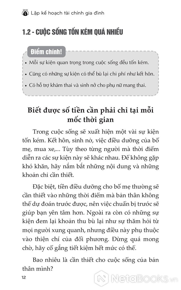 Bao quát nhiều lĩnh vực như: lập kế hoạch cho hôn nhân, nuôi dạy con, chăm sóc cha mẹ, tự chủ khi về già, quản lý tài sản, nộp thuế, cơ chế bảo hiểm…, cuốn sách “Lập kế hoạch tài chính gia đình” cung cấp một khối lượng thông tin lớn và vô cùng dễ hiểu về cách xây dựng kế hoạch tài chính.