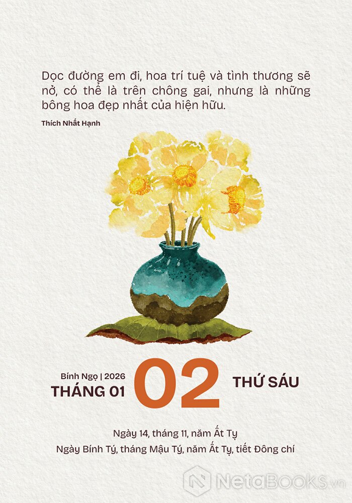 Sách Lịch Bàn 365 Ngày - Lòng Đất Nở Hoa Trời - Thiền Sư Thích Nhất Hạnh của tác giả Thích Nhất Hạnh, có bán tại Nhà sách online NetaBooks với ưu đãi Bao sách miễn phí và Gian hàng NetaBooks tại Tiki với ưu đãi Bao sách miễn phí và tặng Bookmark