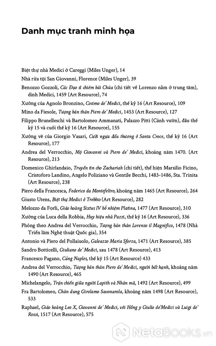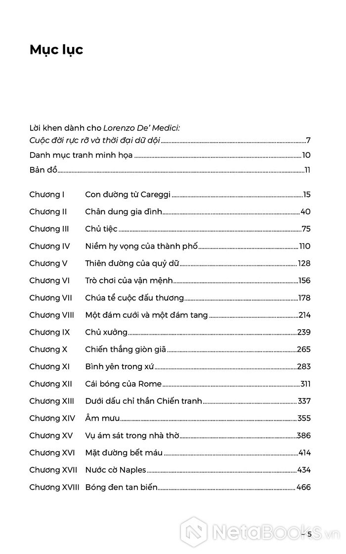 Mục lục của sách Lorenzo De’ Medici - Cuộc Đời Rực Rỡ Và Thời Đại Dữ Dội