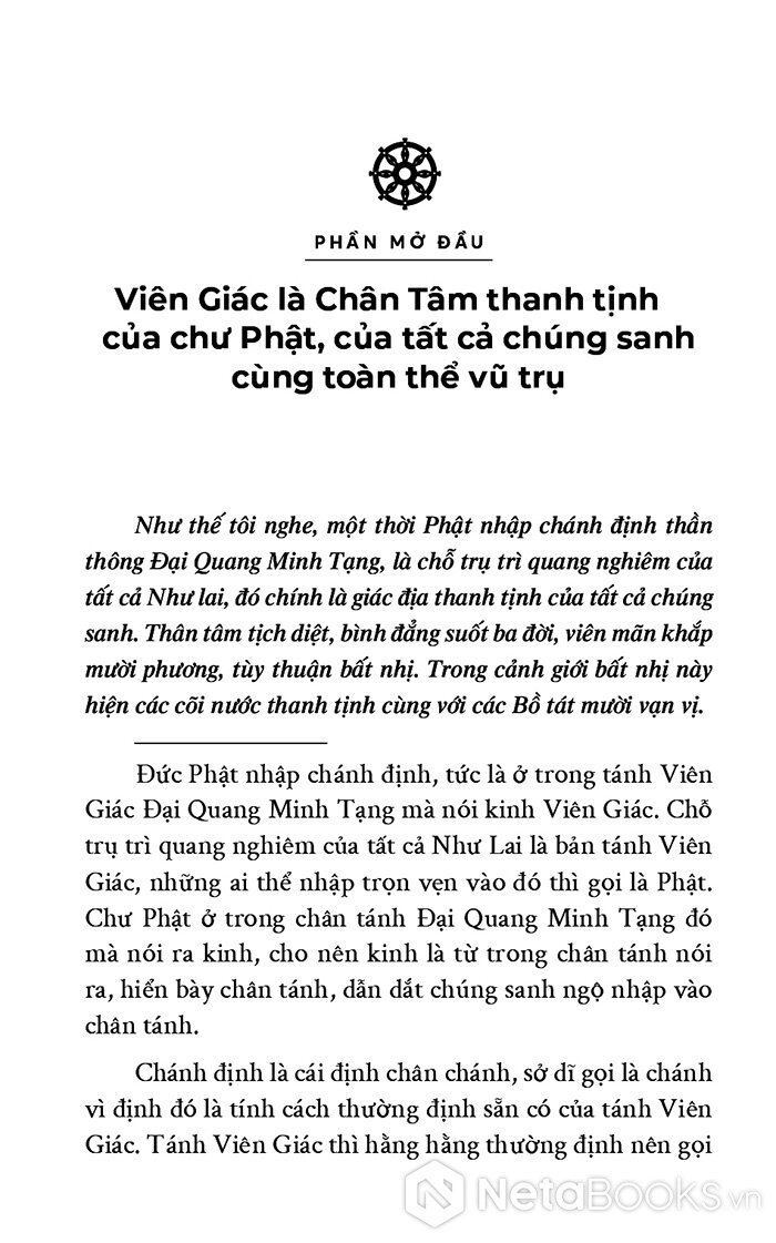 - Phần mở đầu: Viên Giác là Chân Tâm thanh tịnh của chư Phật, của tất cả chúng sanh cùng toàn thể vũ trụ