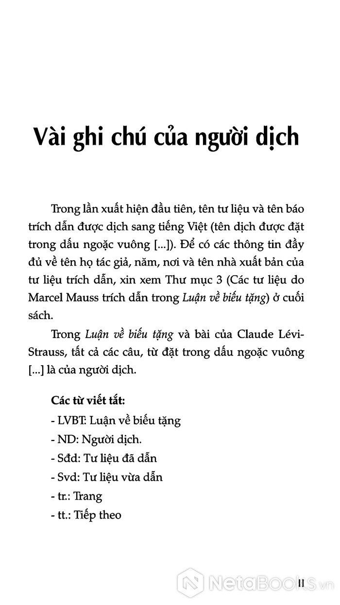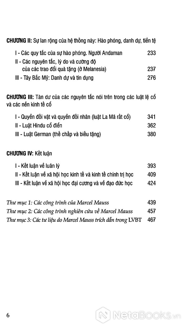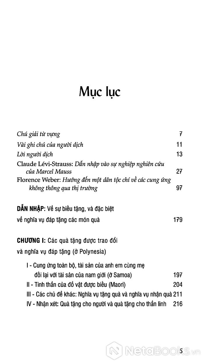 Mục lục của cuốn sách Luận Về Biếu Tặng - Hình Thức Và Lý Do Của Sự Trao Đổi Trong Các Xã Hội Cổ Sơ (Bìa Cứng)
