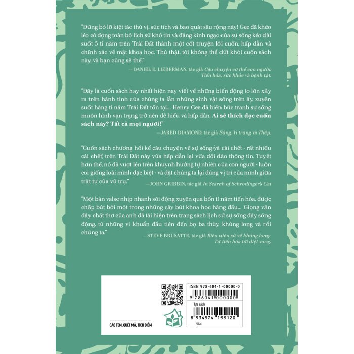 Trong cuốn sách này, Henry Gee đã lướt qua 4,6 tỷ năm lịch sử tự nhiên với nhiệt huyết và sự nghiêm túc về trí tuệ. Những nghiên cứu khoa học mới nhất đã được ông trình bày theo phong cách rõ ràng, dễ tiếp cận, thuật lại một câu chuyện gây ngỡ ngàng về sự sống còn và sự kiên trì, làm sáng tỏ sự cân bằng mong manh vẫn luôn tồn tại trong cuộc sống này.
