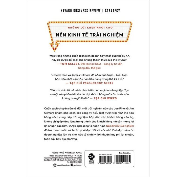 Thời gian có hạn. Sự chú ý là khan hiếm. Bạn có đang thu hút khách hàng của mình không? Cửa hàng Apple, Disney, LEGO, Starbucks. Những cái tên này gợi lên hình ảnh về hàng hóa và dịch vụ đơn thuần hay chúng gợi lên một cái gì đó nhiều hơn - một cái gì đó trực quan? Chào mừng bạn đến với Nền kinh tế trải nghiệm, nơi các doanh nghiệp phải hình thành các kết nối độc đáo để đảm bảo tình cảm của khách hàng - và đảm bảo sự sống còn của chính họ. Cuốn sách chuyên sâu về đổi mới trải nghiệm này của Joe Pine và Jim Gilmore khám phá cách các công ty trở nên khác biệt và vượt trội bằng cách cung cấp trải nghiệm hấp dẫn cho khách hàng của họ, không chỉ khiến khách hàng trung thành mà còn mang lại lợi nhuận cao hơn.