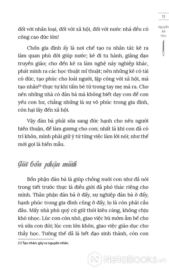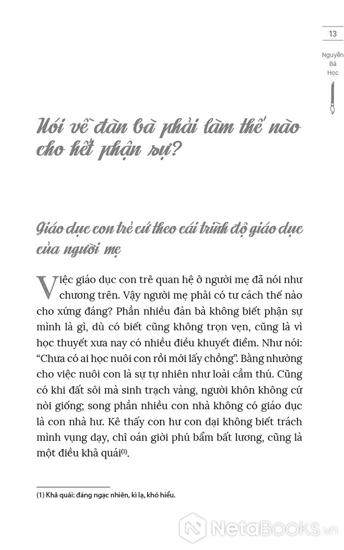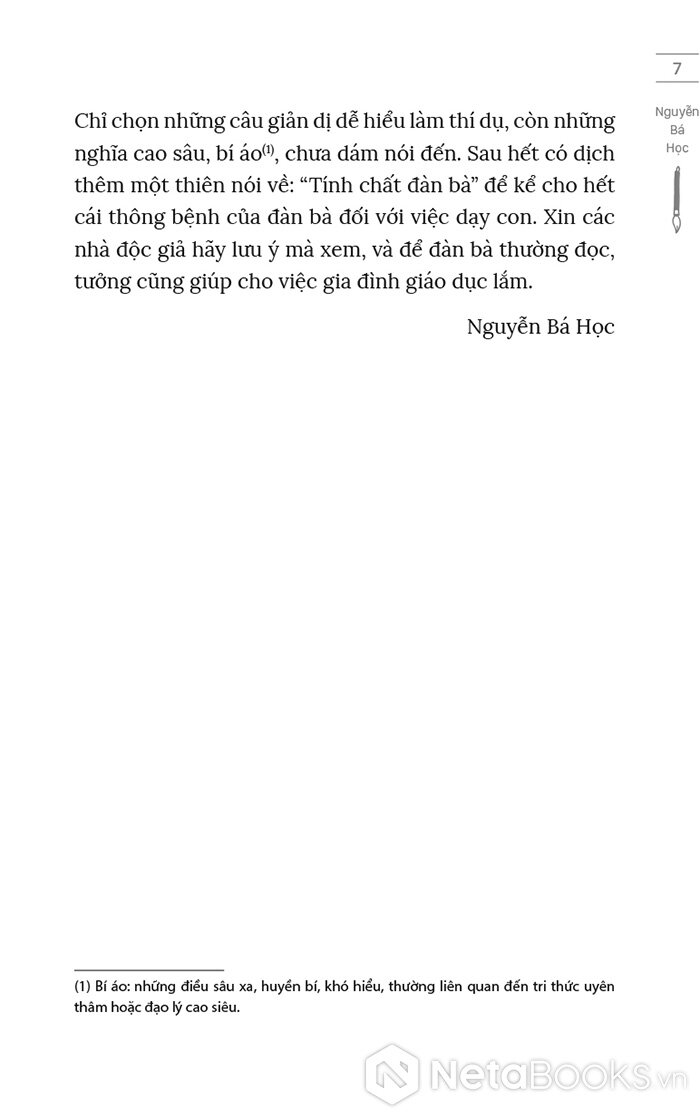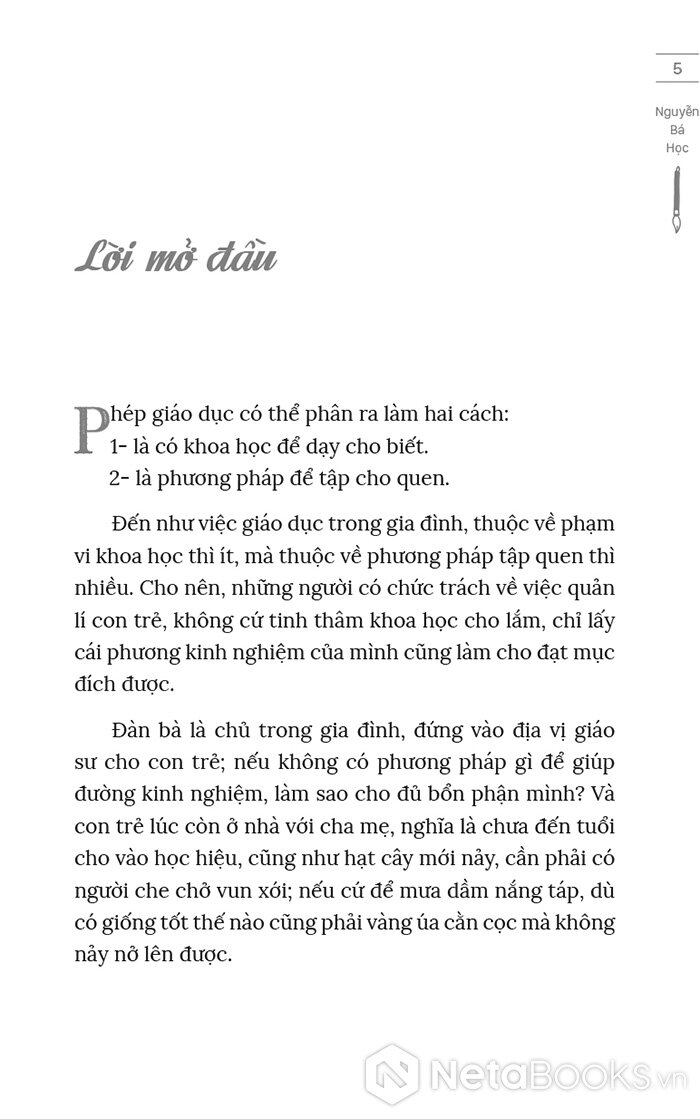 Ít ai biết được rằng, cách đây hơn 100 năm, những trí thức thế hệ đầu tiên của Việt Nam đã biên soạn những “cẩm nang” dạy trẻ nói riêng và giáo dục gia đình nói chung. Có thể một số quan điểm về giáo dục trong các cuốn sách này đã bị coi là lỗi thời và cần tranh luận thêm, nhưng phần lớn, chúng đều còn nguyên giá trị, thậm chí còn có ý nghĩa nhiều hơn trong bối cảnh các giá trị đạo đức truyền thống đang bị lung lay và những mối quan hệ trong gia đình đang ngày càng lỏng lẻo.