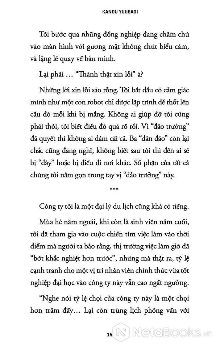 2. Tập hợp 3 truyện ngắn, với ngôi thứ nhất “tôi”, xoay quanh những nhân viên văn phòng bị đẩy đến giới hạn bởi những người sếp tồi tệ.
