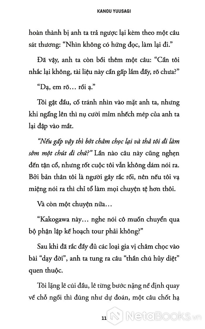 Sách Ngày Đẹp Trời Tôi Muốn Trả Thù Sếp của tác giả Kanoh Yusagi, có bán tại Nhà sách online NetaBooks với ưu đãi Bao sách miễn phí và Gian hàng NetaBooks tại Tiki với ưu đãi Bao sách miễn phí và tặng Bookmark