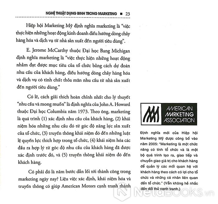 Sách Nghệ Thuật Dụng Binh Trong Marketing của tác giả Jack Trout, Al Ries, có bán tại Nhà sách online NetaBooks với ưu đãi Bao sách miễn phí và Gian hàng NetaBooks tại Tiki với ưu đãi Bao sách miễn phí và tặng Bookmark