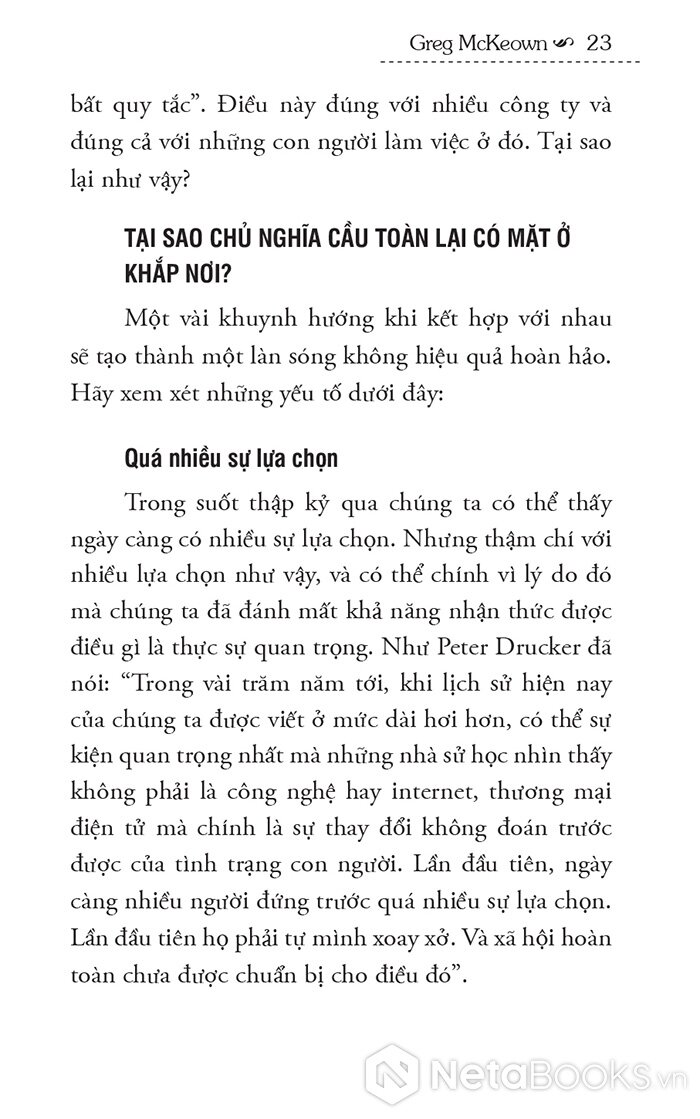Sách Nghệ Thuật Theo Đuổi Sự Tối Giản - Greg McKeown của tác giả Greg McKeown, có bán tại Nhà sách online NetaBooks với ưu đãi Bao sách miễn phí và Gian hàng NetaBooks tại Tiki với ưu đãi Bao sách miễn phí và tặng Bookmark