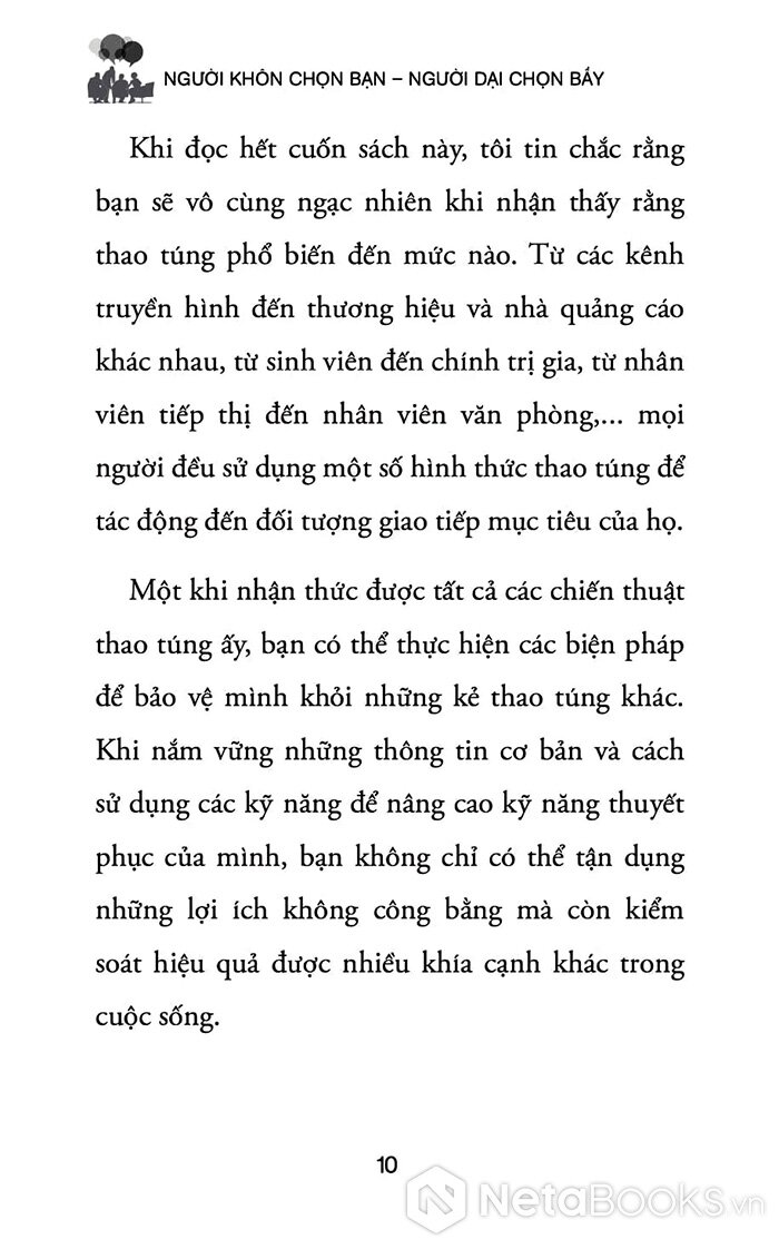 - Thao Túng Tích Cực (Positive Influence Strategy): Khám phá cách sử dụng các công cụ thuyết phục tiên tiến dựa trên tâm lý học hành vi để kiến tạo kết quả cùng có lợi (Win-Win). Nâng cao khả năng dẫn dắt tâm trí đối phương để hướng tới mục tiêu chung, tránh xa sự thao túng tiêu cực và xây dựng lòng tin có chủ đích.