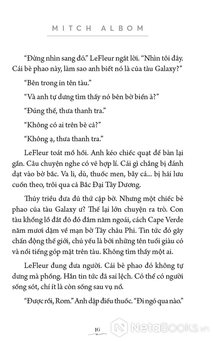 Sách Người Lạ Trên Bè Cứu Sinh của tác giả Mitch Albom, có bán tại Nhà sách online NetaBooks với ưu đãi Bao sách miễn phí và Gian hàng NetaBooks tại Tiki với ưu đãi Bao sách miễn phí và tặng Bookmark