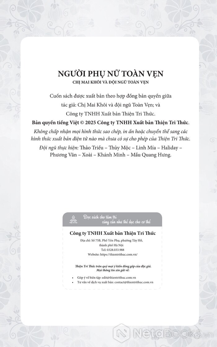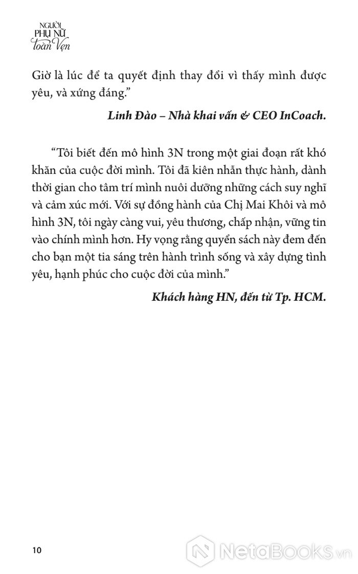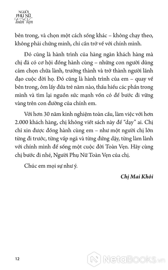 Sách Người Phụ Nữ Toàn Vẹn của tác giả Chị Mai Khôi và đội ngũ Toàn Vẹn, có bán tại Nhà sách online NetaBooks với ưu đãi Bao sách miễn phí và Gian hàng NetaBooks tại Tiki với ưu đãi Bao sách miễn phí và tặng Bookmark