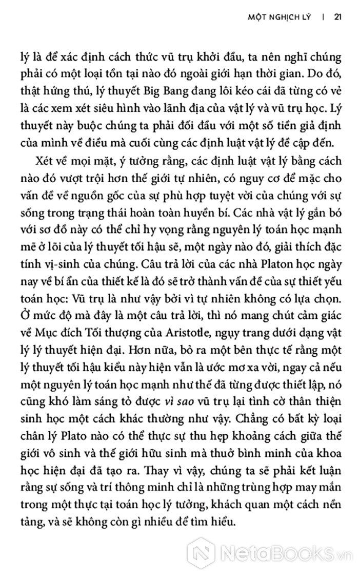 Ẩn mình trong khoa vật lý lý thuyết tại Cambridge, Stephen Hawking và người bạn kiêm cộng sự Thomas Hertog đã nghiên cứu vấn đề này trong hai mươi năm, phát triển một lý thuyết mới về vũ trụ có thể giải thích sự xuất hiện của sự sống. Khi nghiên cứu sâu về vật lý lượng tử của ảnh toàn ký vũ trụ và quay ngược thời gian về nguồn gốc sâu xa nhất của chúng ta, họ đã vô cùng kinh ngạc khi tìm thấy một cấp độ tiến hóa sâu hơn, trong đó các định luật vật lý tự biến đổi và đơn giản hóa cho đến khi các hạt, lực và thậm chí cả thời gian biến mất. Khám phá này dẫn họ đến một ý tưởng mang tính cách mạng: Các định luật vật lý không phải là bất biến mà được sinh ra và đồng tiến hóa khi vũ trụ mà chúng chi phối hình thành. Khi gần đến những ngày cuối đời của Hawking, hai người đã công bố lý thuyết của họ, đề xuất một quan điểm Darwin mới và triệt để về nguồn gốc vũ trụ của chúng ta.