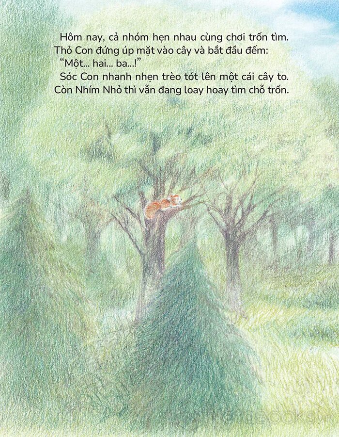Thỏ Con, Sóc Con và Nhím Nhỏ cùng chơi trốn tìm. Nhím Nhỏ đã tìm thấy một chỗ trốn lí tưởng, thế nhưng vì trốn kĩ quá nên… Nhím Nhỏ lạc đường mất tiêu! Trò chơi trốn tìm sẽ diễn ra thế nào nữa nhỉ? Các em hãy cùng theo dõi câu chuyện đáng yêu này nhé!