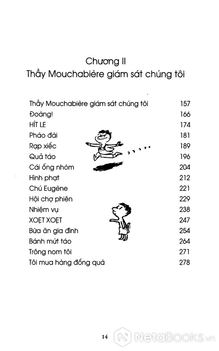 48 mẩu truyện ngắn được sắp xếp trong 3 chương (quyển 1) giúp độc giả dễ theo dõi hơn những cuộc phiêu lưu gắn với hình ảnh đụng đâu hỏng đấy của nhóc Nicolas và các bạn. Làm quen với những đứa trẻ quậy như quỷ sứ ấy, bạn sẽ chợt có một tình cảm dịu êm vô bờ bến, một sự dịu dàng mà từ ấu thơ người ta vẫn dành cho người mình vô cùng yêu thương.