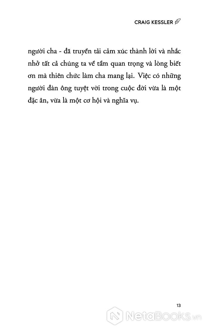 Cuốn sách là một bản tuyên ngôn sâu sắc về nghĩa vụ, phẩm chất và trách nhiệm làm cha trong thời đại mới, nơi nuôi dạy con không chỉ là đảm bảo “đủ đầy” mà còn là sự hiện diện, tử tế, kỷ luật cảm xúc và tấm gương nhân cách.