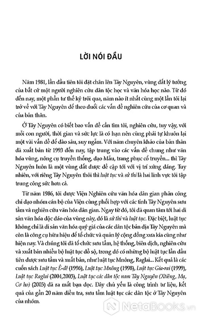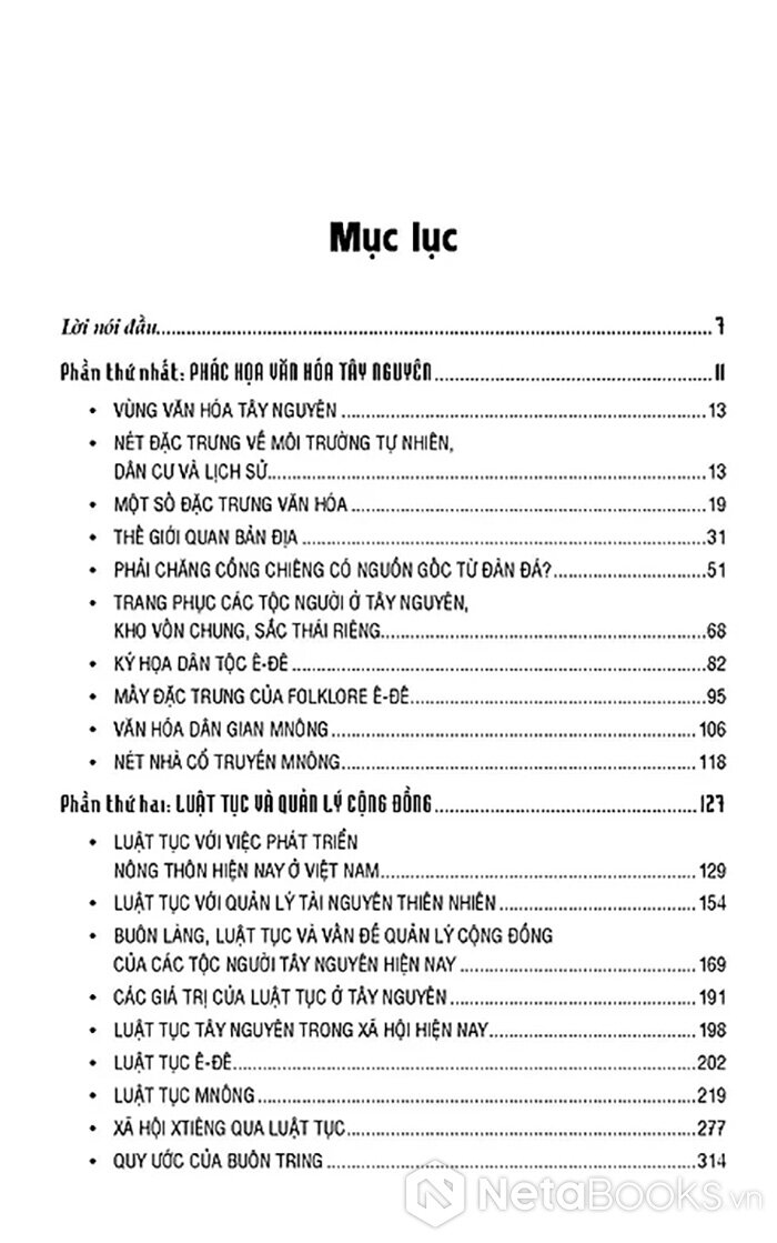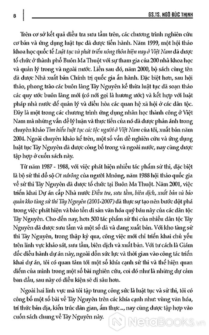 Tập hợp các bài nghiên cứu về văn hoá Tây Nguyên, đặc biệt là hai di sản văn hoá của vùng này là sử thi và luật tục cùng một số bài viết về Tây Nguyên trên các khía cạnh như: Vùng văn hoá, trí thức bản địa, kiến trúc dân gian, ẩm thực,...