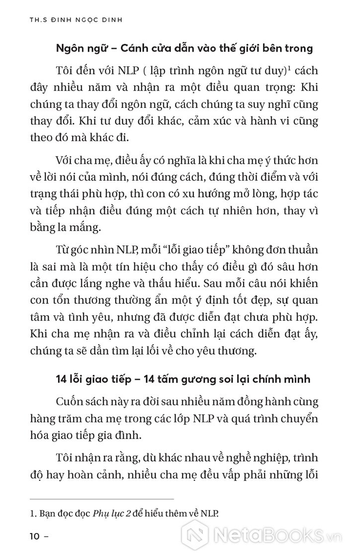 - Mô hình NLP và Trị liệu gia đình: Ứng dụng hệ thống 5 dạng hội thoại do tác giả phát triển để xây dựng niềm tin an toàn cho con.