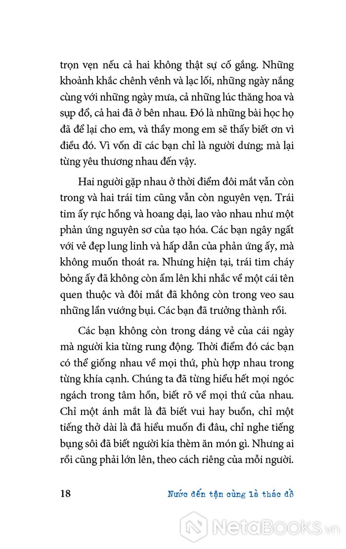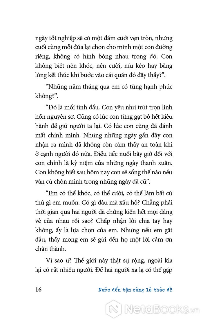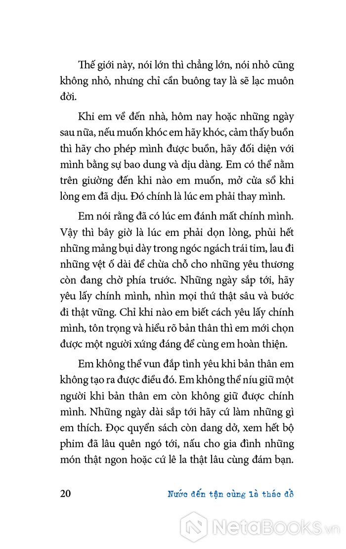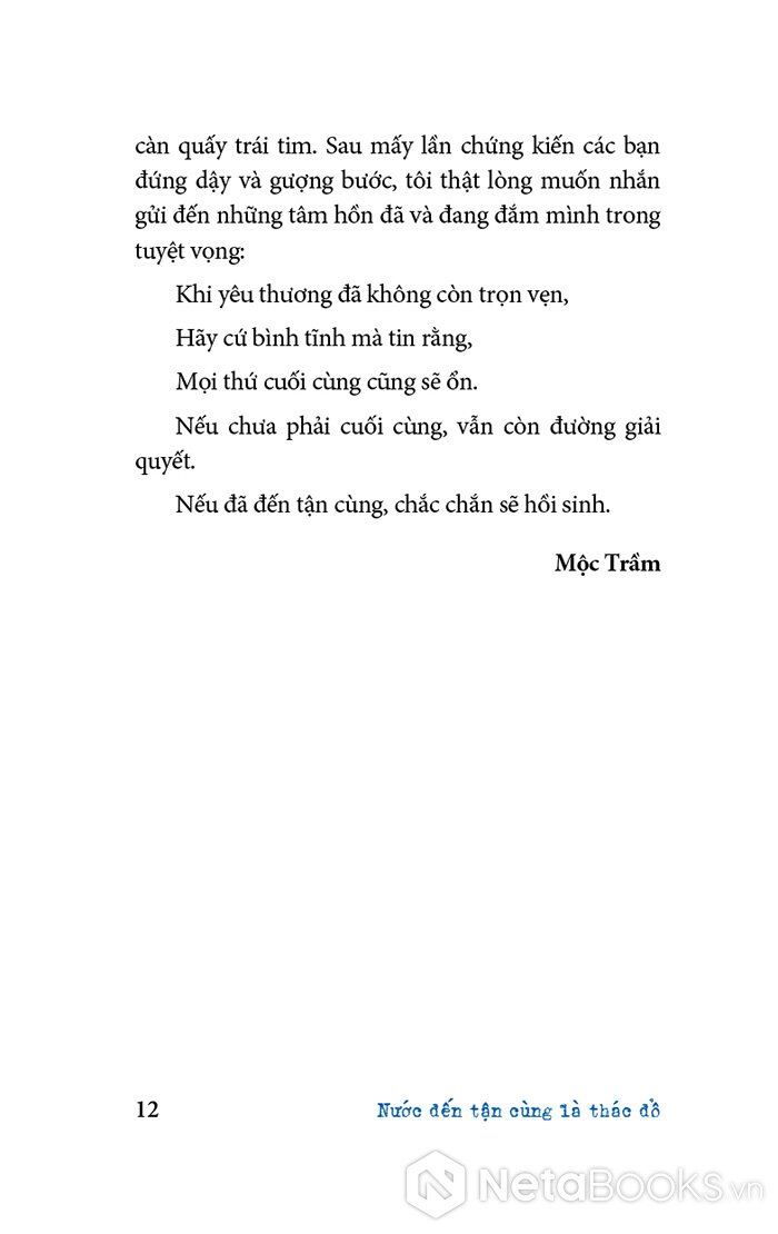 Sách Nước Đến Tận Cùng Là Thác Đổ - Người Đến Tận Cùng Sẽ Hồi Sinh của tác giả Mộc Trầm, có bán tại Nhà sách online NetaBooks với ưu đãi Bao sách miễn phí và Gian hàng NetaBooks tại Tiki với ưu đãi Bao sách miễn phí và tặng Bookmark