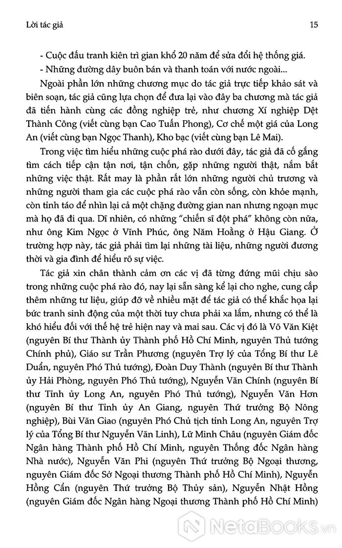 Với hơn 500 trang sách, Đặng Phong lần lượt trình bày khoảng hai chục “điển cứu” tiêu biểu cho các mũi đột phá trong nông nghiệp, công nghiệp, thương mại, phân phối, ngoại thương và quản lý doanh nghiệp. Đó là những câu chuyện có thật về các hợp tác xã dám khoán hộ, các nhà máy dám tự hạch toán, các địa phương dám mở luồng, giao thương vượt quy định; những con người cụ thể, trong hoàn cảnh cụ thể, buộc phải đi tìm lối thoát cho sản xuất và đời sống dân sinh. Họ không làm lý thuyết, cũng không chờ chủ trương; họ hành động từ thực tiễn, chấp nhận rủi ro, thậm chí chịu kỷ luật, để mở ra những “khe sáng” đầu tiên cho nền kinh tế bị bó cứng.