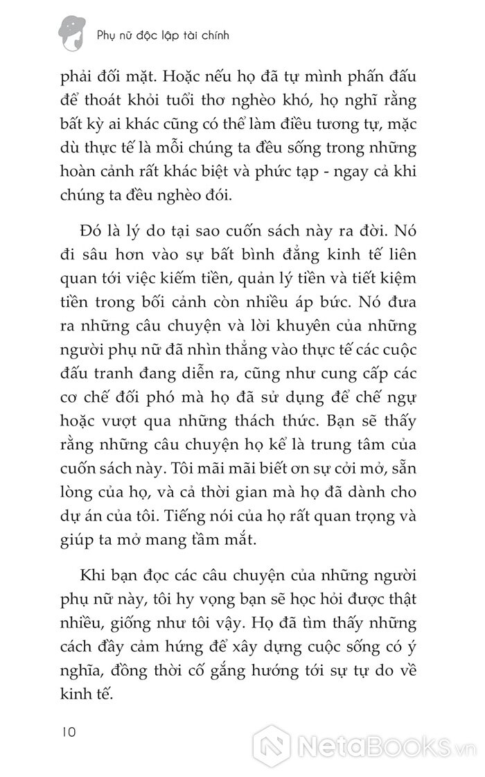 “Phụ nữ độc lập tài chính” không nhằm biến tất cả phụ nữ thành triệu phú, mà trao cho họ một công cụ tư duy mới: rằng bạn không cần trở nên hoàn hảo, nhưng bạn hoàn toàn có thể trở nên tự do. Trong thế giới mà lựa chọn đúng đắn thường bị đánh giá bằng thước đo của người khác, đây là cuốn sách cổ vũ cho lựa chọn của chính bạn, dù đó là làm CEO, nội trợ, du mục kỹ thuật số hay bất kỳ vai trò nào bạn thấy đáng sống.