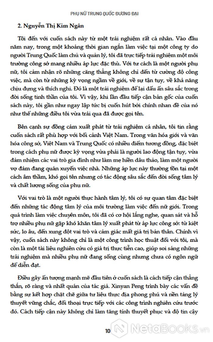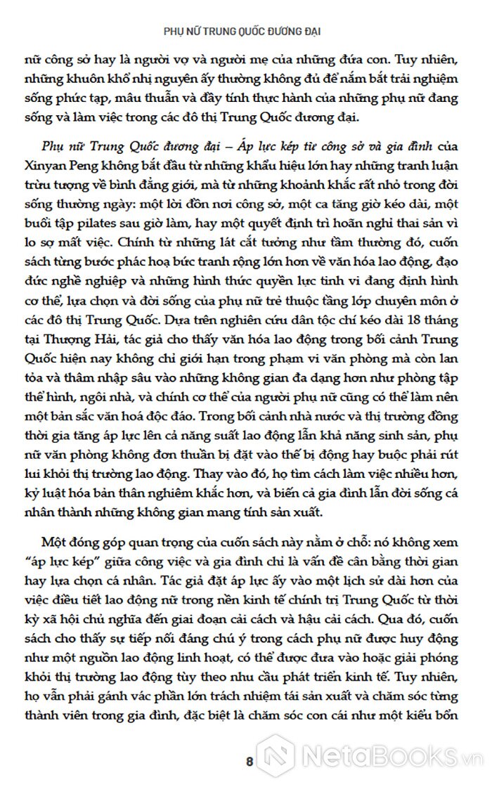 Sách Phụ Nữ Trung Quốc Đương Đại của tác giả Xinyan Peng, có bán tại Nhà sách online NetaBooks với ưu đãi Bao sách miễn phí và Gian hàng NetaBooks tại Tiki với ưu đãi Bao sách miễn phí và tặng Bookmark