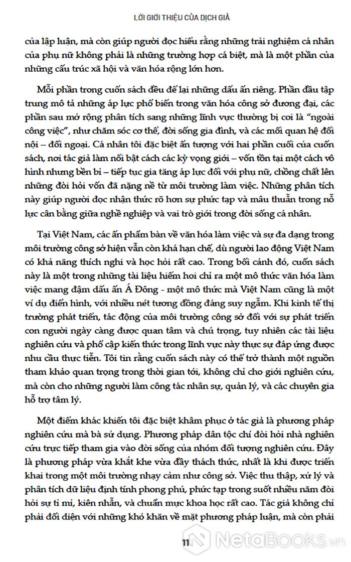 Không chỉ là một công trình học thuật giàu tính lý thuyết, cuốn sách còn đem đến những lát cắt gần gũi về đời sống thường nhật của phụ nữ công sở giữa đô thị hóa và cạnh tranh nghề nghiệp gay gắt. Qua đó, tác phẩm làm lộ diện một hình thức bất bình đẳng giới tinh vi, dai dẳng và khó nhận thấy trong xã hội hiện đại.