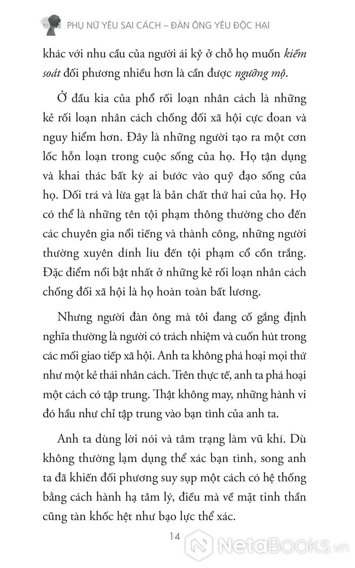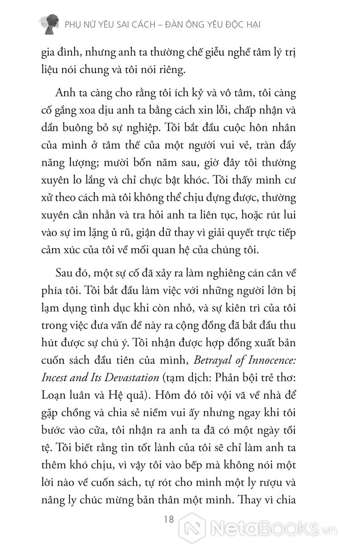 Có những mối tình khiến người phụ nữ rạng rỡ, tự tin và được là chính mình. Nhưng cũng có những mối quan hệ khiến họ thu mình lại, đánh mất tiếng nói, lòng tự trọng và niềm tin vào bản thân. “Phụ nữ yêu sai cách - Đàn ông yêu độc hại” mang đến một góc nhìn thực tế về các mối quan hệ lạm dụng cảm xúc, giúp chúng ta hiểu tại sao điều đó lại xảy ra và quan trọng hơn, làm sao để thoát ra.
