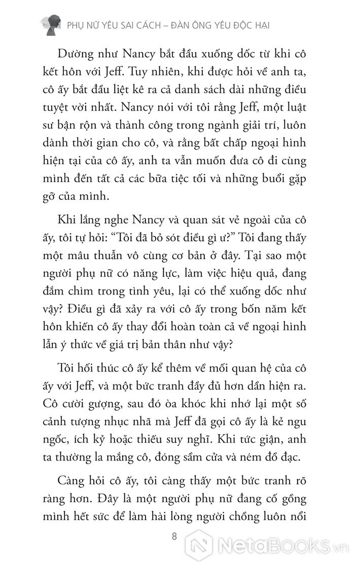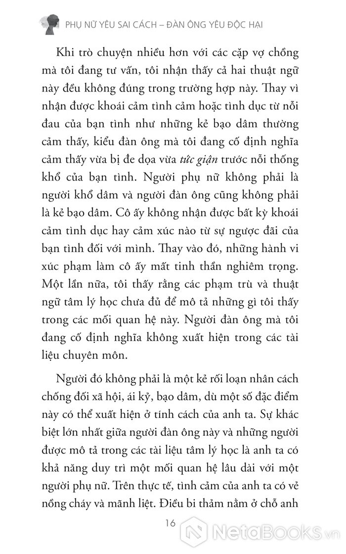 Cuốn sách “Phụ nữ yêu sai cách - Đàn ông yêu độc hại” được chia thành nhiều phần, dẫn dắt người đọc đi từ nhận diện - hiểu nguyên nhân - thoát khỏi và chữa lành: