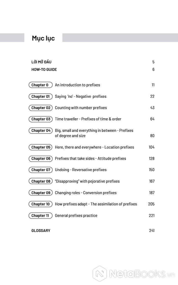 Nội dung chính của cuốn sách Prefix Workout - Giải Mã Từ Vựng Tiếng Anh Với Tiền Tố
