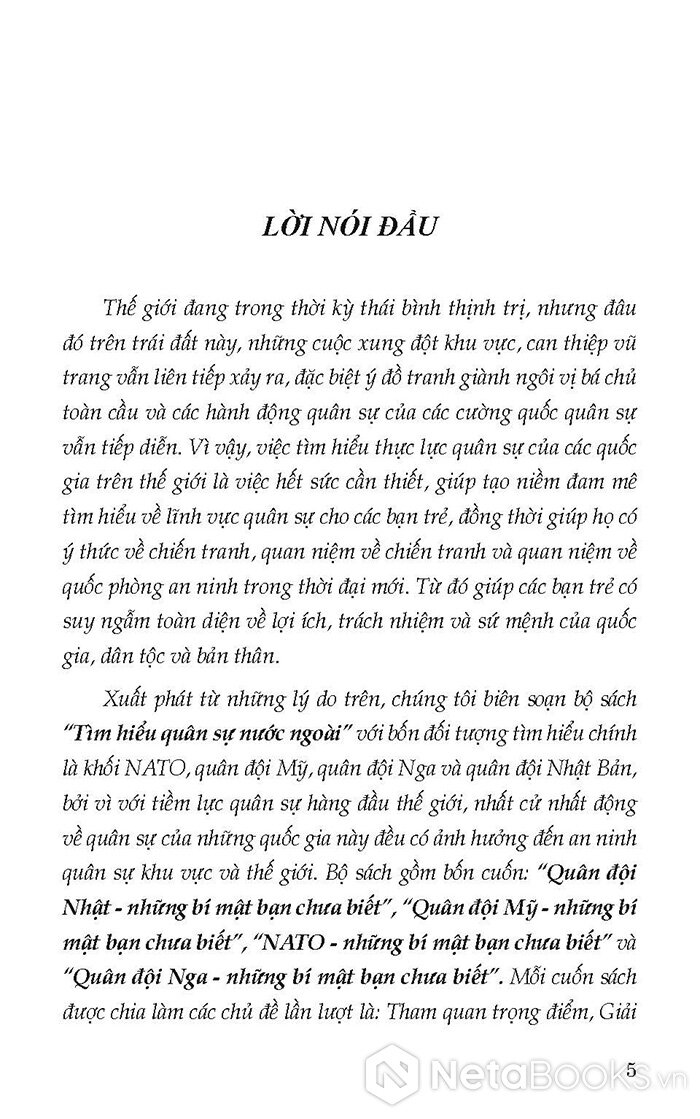 Quân đội Nhật - Những bí mật bạn chưa biết tìm hiểu những nét khái quát về hệ thống quân sự, kỹ thuật quân sự, ngành công nghiệp quốc phòng, cũng như những tiềm lực, tiềm năng quân sự …của Nhật – một quốc gia dẫn đầu thế giới về khoa học kỹ thuật và công nghệ; một cường quốc kinh tế; một trong những nước có chi tiêu quốc phòng lớn nhất thế giới; thành viên của Liên Hiệp Quốc, G8, G4, APEC, G20,…