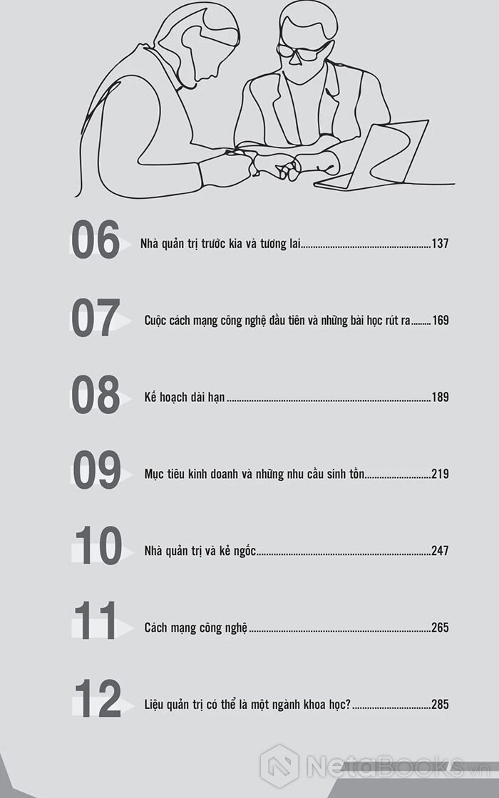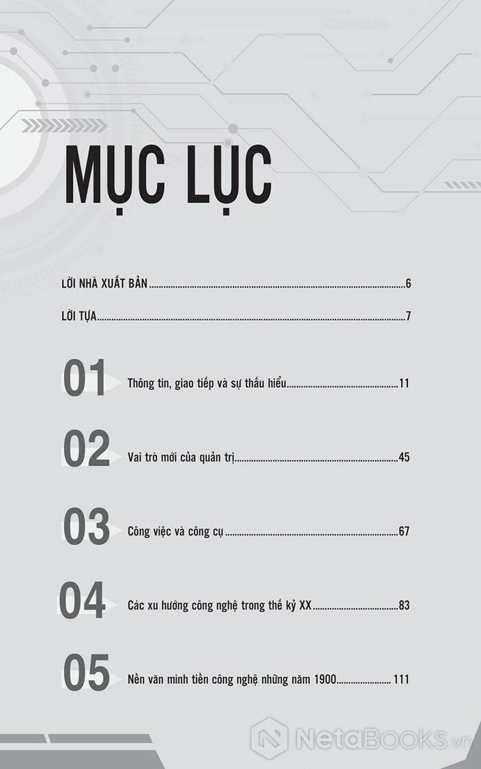 Các chủ đề chính của sách bao gồm: thông tin và giao tiếp trong tổ chức, vai trò mới của nhà quản trị, mối quan hệ giữa công việc và công cụ, tác động dài hạn của các cuộc cách mạng công nghệ, và khả năng khoa học hóa ngành quản trị. Mỗi chương đều chứa đựng chiều sâu tri thức và gợi mở các câu hỏi thực tiễn về cách điều hành doanh nghiệp, đặc biệt trong thời đại mà thông tin trở nên dư thừa, còn giao tiếp lại ngày càng rối loạn.