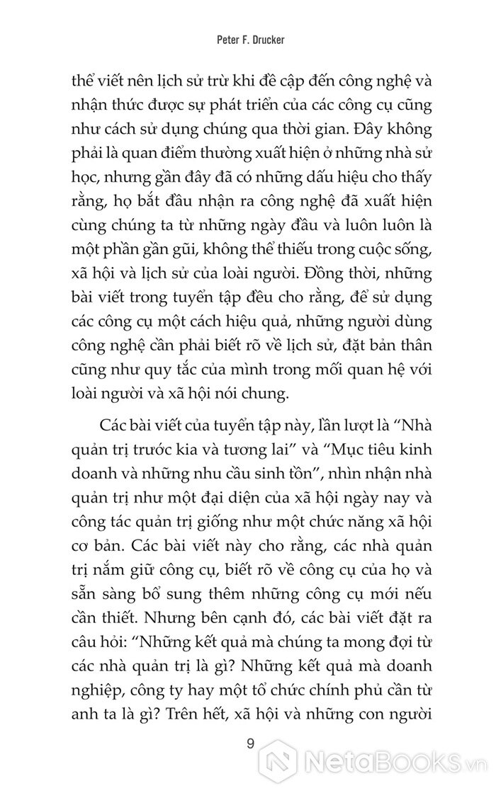 Dù được viết từ những năm 1954-1969, các bài viết vẫn giữ nguyên giá trị cốt lõi trong việc lý giải cách công nghệ ảnh hưởng đến cơ cấu tổ chức, phương thức làm việc và vai trò của nhà quản trị. Drucker không tiếp cận công nghệ như một trào lưu nhất thời, mà nhìn nhận nó như một nền tảng định hình lại “văn minh vật chất” - nơi công cụ không còn là vật thể trung gian mà trở thành một phần mở rộng của con người và tổ chức.