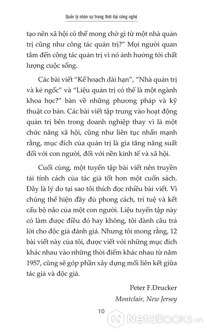 Sách Quản Lý Nhân Sự Trong Thời Đại Công Nghệ của tác giả Peter F. Drucker, có bán tại Nhà sách online NetaBooks với ưu đãi Bao sách miễn phí và Gian hàng NetaBooks tại Tiki với ưu đãi Bao sách miễn phí và tặng Bookmark