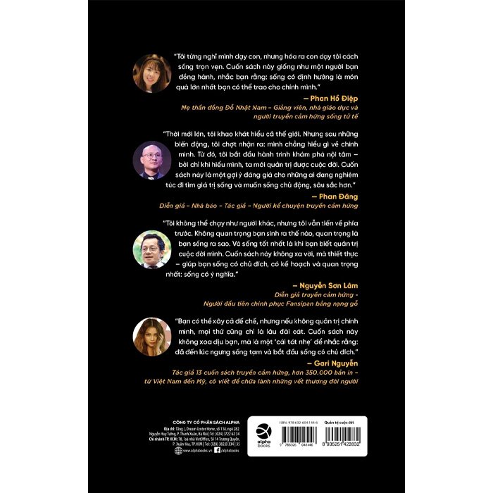 “Bạn có thể xây cả đế chế, nhưng nếu không quản trị chính mình, mọi thứ cũng chỉ là lâu đài cát. Cuốn sách này không xoa dịu bạn, mà là một “cái tát nhẹ” để nhắc rằng: đã đến lúc ngừng sống tạm bợ và bắt đầu sống có chủ đích.” - Gari Nguyễn; Tác giả 13 cuốn sách truyền cảm hứng, hơn 350.000 bản in từ Việt Nam đến Mỹ, có viết cả bằng tiếng Anh về những đời người