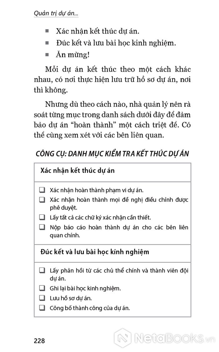 Sách Quản Trị Dự Án Dành Cho Quản Lý Dự Án Không Chuyên (Bìa Cứng) của tác giả Kory Kogon, Suzette Blakemore, có bán tại Nhà sách online NetaBooks với ưu đãi Bao sách miễn phí và Gian hàng NetaBooks tại Tiki với ưu đãi Bao sách miễn phí và tặng Bookmark