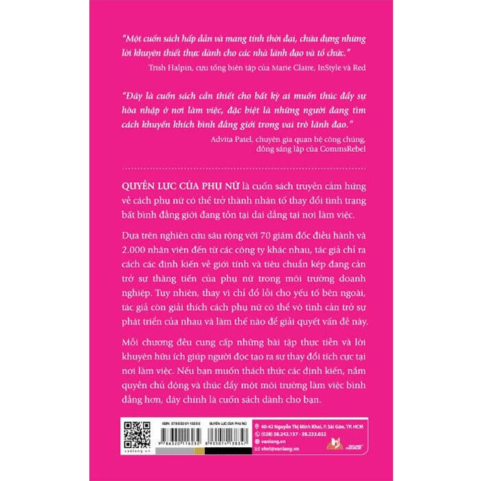 Quyền Lực Của Phụ Nữ là cuốn sách truyền cảm hứng mạnh mẽ về vai trò và sức ảnh hưởng của phụ nữ trong việc thay đổi những bất bình đẳng giới còn tồn tại trong môi trường làm việc hiện đại. Dựa trên nghiên cứu sâu rộng với 70 giám đốc điều hành và hơn 2.000 nhân viên đến từ nhiều doanh nghiệp khác nhau, tác giả Dr. Parves Khan đã chỉ ra những rào cản vô hình mà phụ nữ thường phải đối mặt trong hành trình phát triển sự nghiệp. Những định kiến về giới, tiêu chuẩn kép và các khuôn mẫu xã hội lâu đời vẫn đang âm thầm hạn chế cơ hội thăng tiến của phụ nữ trong các tổ chức.