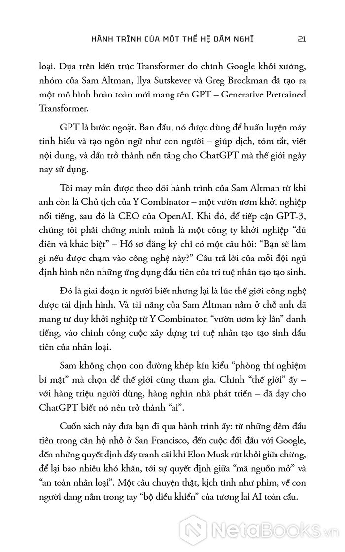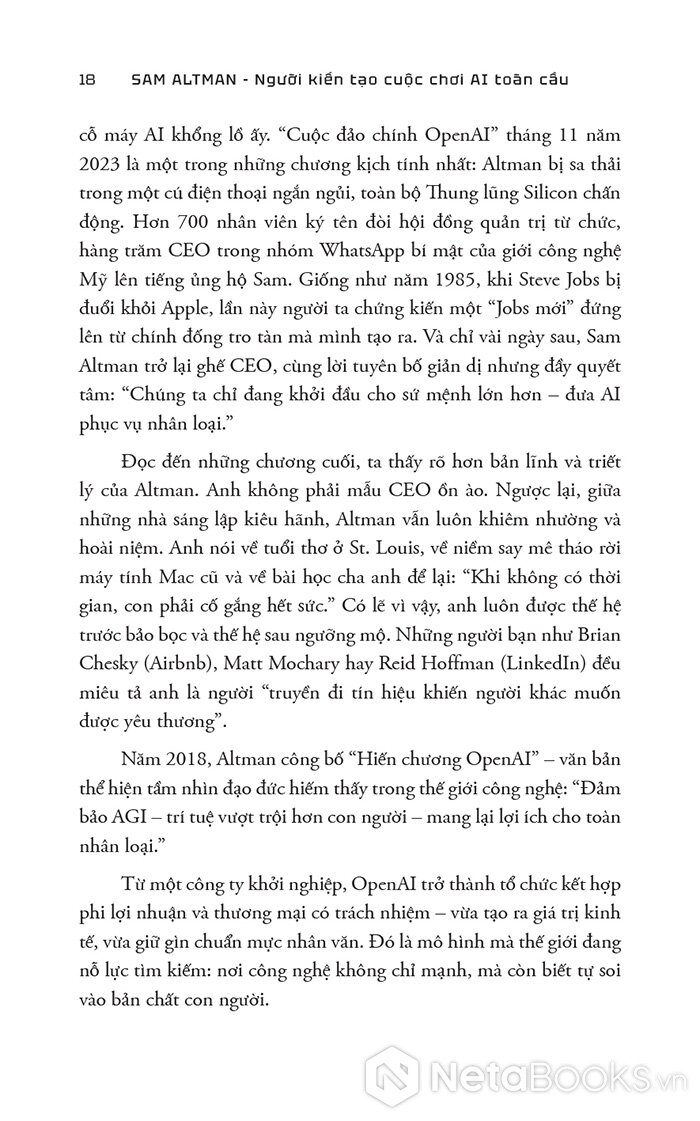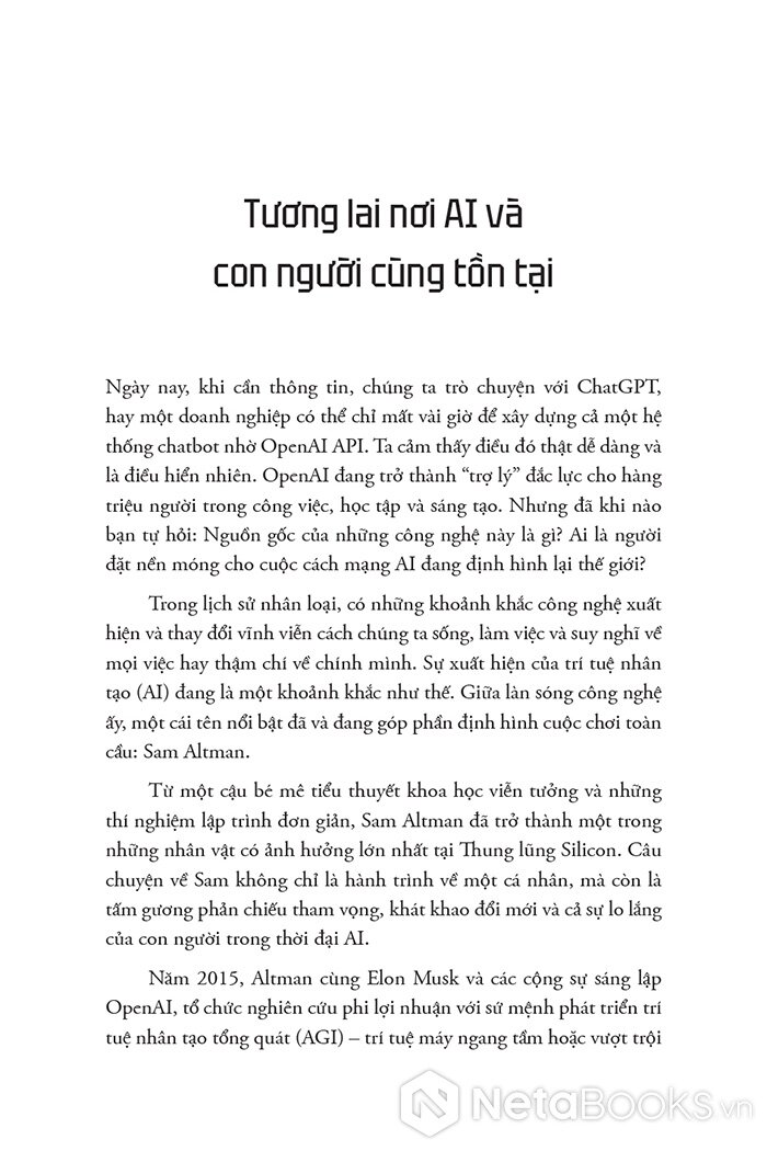 “Cuốn sách này không chỉ là tiểu sử của Altman, mà còn là biên niên sử của OpenAI - nơi đang viết lại tương lai nhân loại.”