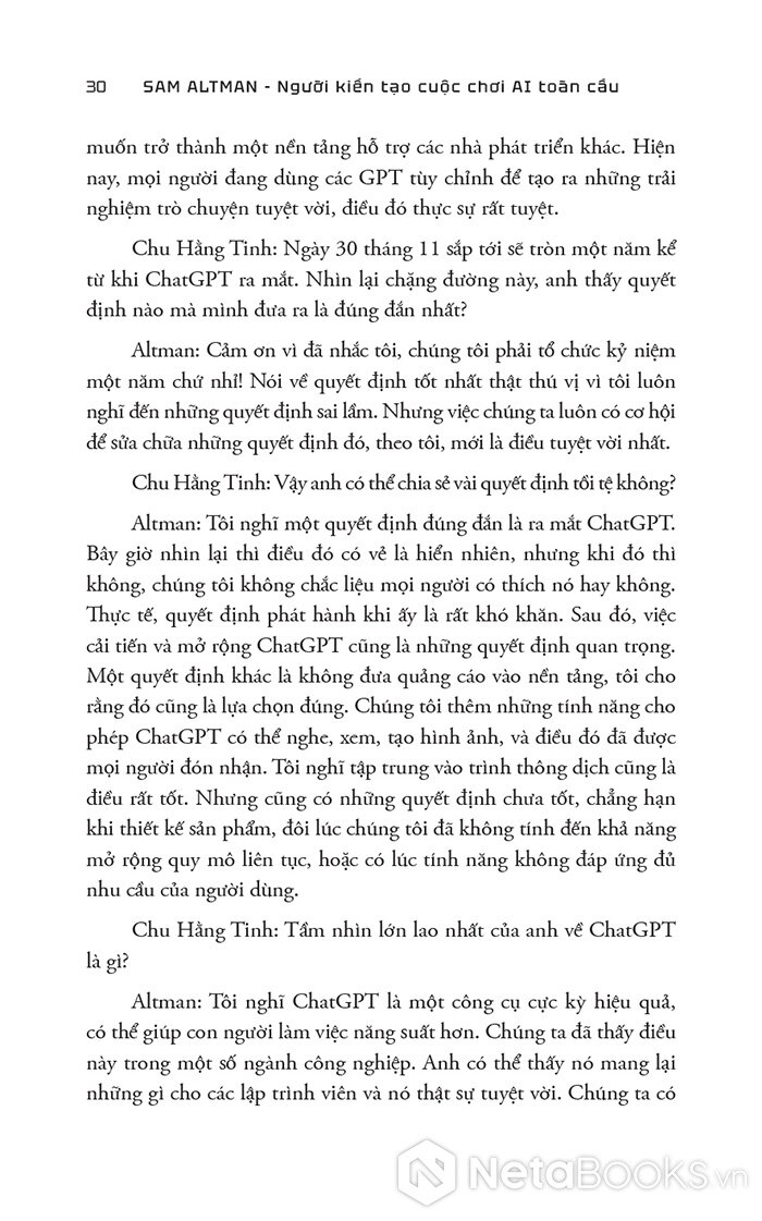 “Sam Altman - Người Kiến Tạo Cuộc Chơi AI Toàn Cầu” là cuốn tiểu sử phỏng vấn độc quyền đầu tiên trên thế giới về Sam Altman, “cha đẻ của ChatGPT” và là người tiên phong định hình kỷ nguyên trí tuệ nhân tạo (AI).